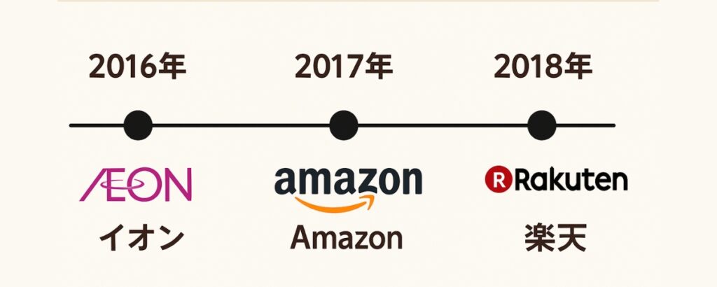 - 日本では2016年のイオンが初開催、その後Amazon・楽天も参入