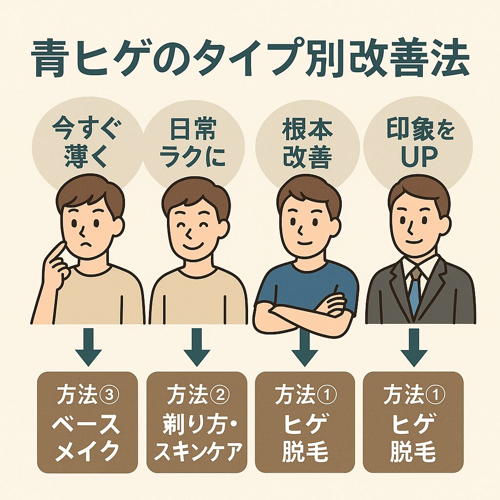 この 3つの改善ルートをまとめて、最短で青ヒゲを改善する方法 をわかりやすく解説します。